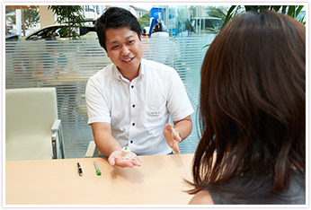 カーライフアドバイザー歴10年の佐藤さんは、「実は人見知りなんです」と笑います。「まずはお客さまの意見を伺って、他社のクルマも気になっていると聞けば、『高い買い物ですので、ゆっくり検討してください』とお伝えします」