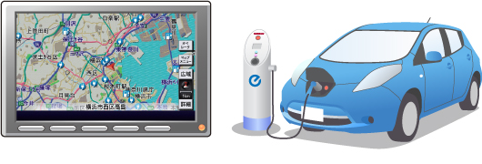 | 電気自動車リーフにお乗りの方は、EV専用カーウイングスナビゲーションシステム(地デジ内蔵)やEV専用N'FITナビゲーションの地図ソフトを更新することによって、急速に広がる充電ネットワーク情報も更新されます。 ※CARWINGS for EVに加入されると、お手持ちの携帯電話を使用して最新の充電ネットワーク情報をカーウイングス情報センターから取得することも可能です。 |
