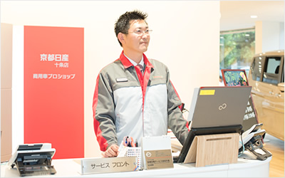 「整備が好きなので、クルマに触っていたいのですが、それだけでなくお客さまとの接点を増やしたいと思い、テクニカルアドバイザーになりました。いい整備をした後、お客さまに役立つことを伝えて、ここで整備をしてよかったと感じていただくというのは、大事な仕事だと思ったのです。経験の中で伝えられることの幅が広がりました。その自信がフロントでお客さまを迎えたい気持ちにつながったのかもしれません」